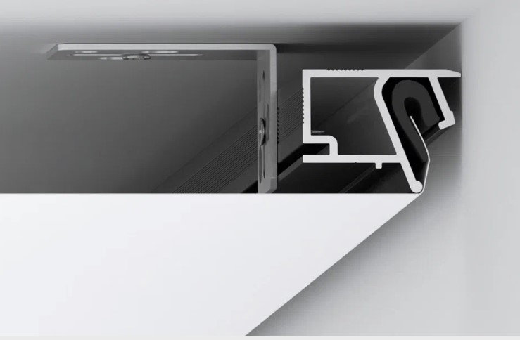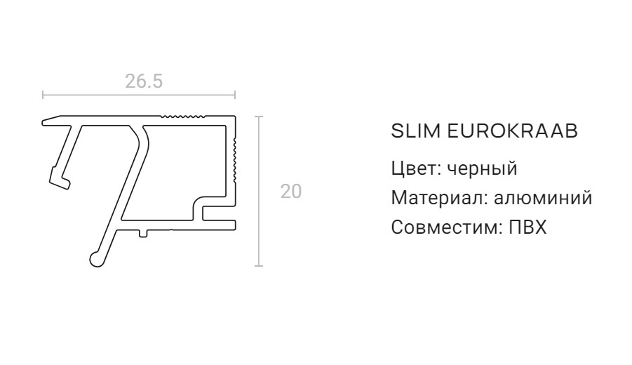 Профильная система SLIM EuroKraab — это самонесущая конструкция, которая крепится к бетонному горизонтальному основанию на специальные консоли SLIM. Крепление профиля к потолку позволяет сохранить высоту потолка. Высота профиля всего 20 мм.